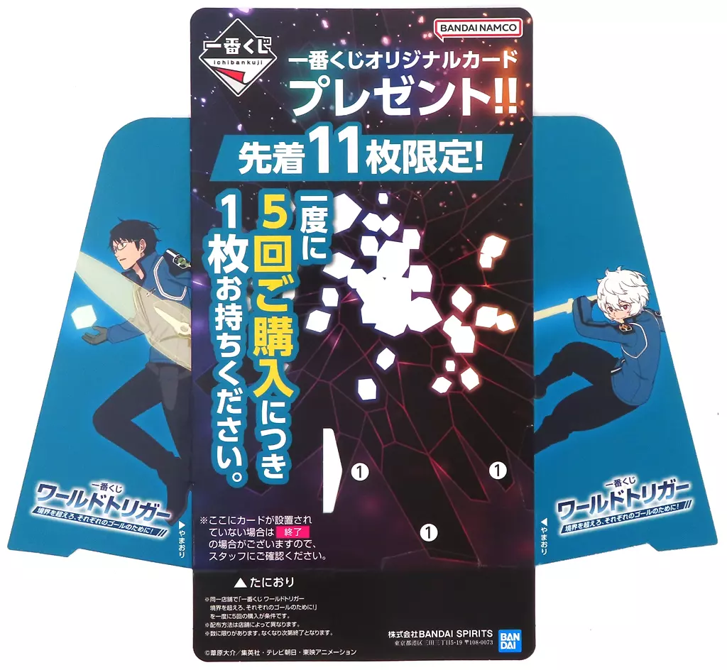 Product explanation ■ This is the "promotional POP" of the original card present campaign "Cross the Ichiban KUJI WORLD TRIGGER boundary for each goal!".