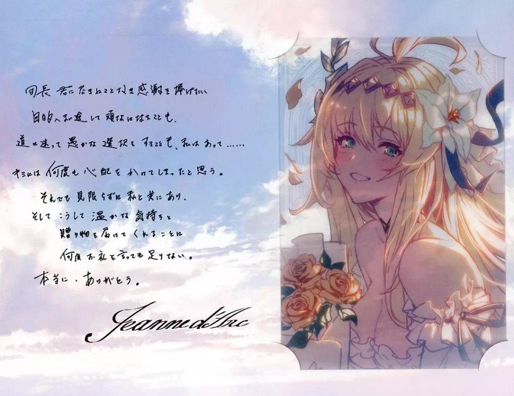 "GRANBLUE FANTASY - Grand Blue Fantasy -" message card with Joan of Arc bromide 2025 Valentine's White Day Campaign