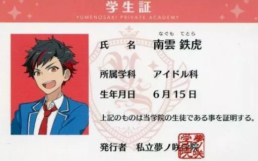 Japanese title: キャラカード(キャラクター) 南雲鉄虎 夢ノ咲学院学生証 「あんさんぶるスターズ! ようこそ転校生ちゃん!新学期☆学生証プレゼントキャンペーン」 クレーンゲーム特典 第2弾