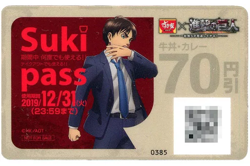 Product description ■ It will be "limited Suki pass" of LINE limited original goods of "Sukiya x Attack on Titan".