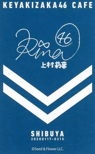 Japanese title: キャラカード 上村莉菜(欅坂46) サイン入りミニカード(渋谷会場限定デザイン) 「欅坂46カフェ」 フード・デザート注文特典