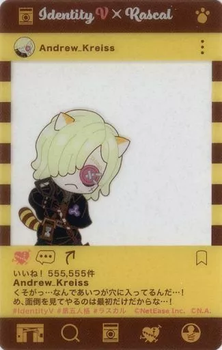 Product Explanation ■ "Rakuten Collection Identity V Fifth Personality x Lascar Collection [IV] ~ Tomopiku Fifth Personality Edition ~" A-25 prize "SNS style clear card".