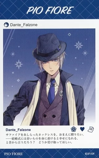 Japanese title: キャラカード ダンテ・ファルツォーネ(ピオフィオーレの晩鐘/ノーマル) 「オトメイト冬の市2020-2021 オトメイトスペシャルメッセージカード 冬の市2020-2021ver.」 会場限定