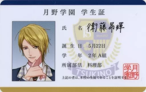 Japanese title: キャラカード 衛藤昂輝(ALIVE) 月野学園学生証・教員証 「ツキノ芸能プロダクション」 アニメイトガールズフェスティバル2022 月野学園文化祭 2号店グッズ購入特典