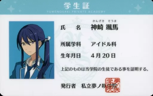 Kanzaki 颯馬 Yumenosaki Gakuin Student ID "Ensemble Stars!"