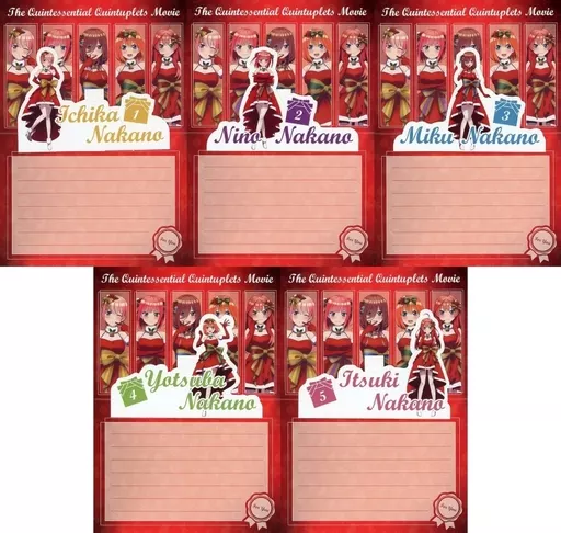 Item Description ■ This item is a set of all 5 kinds of "Christmas Card" of Purchase benefits which is the target item of "Eiga The Quintessential Quintuplets Itsuko-chan's Christmas Fair in Animate".
