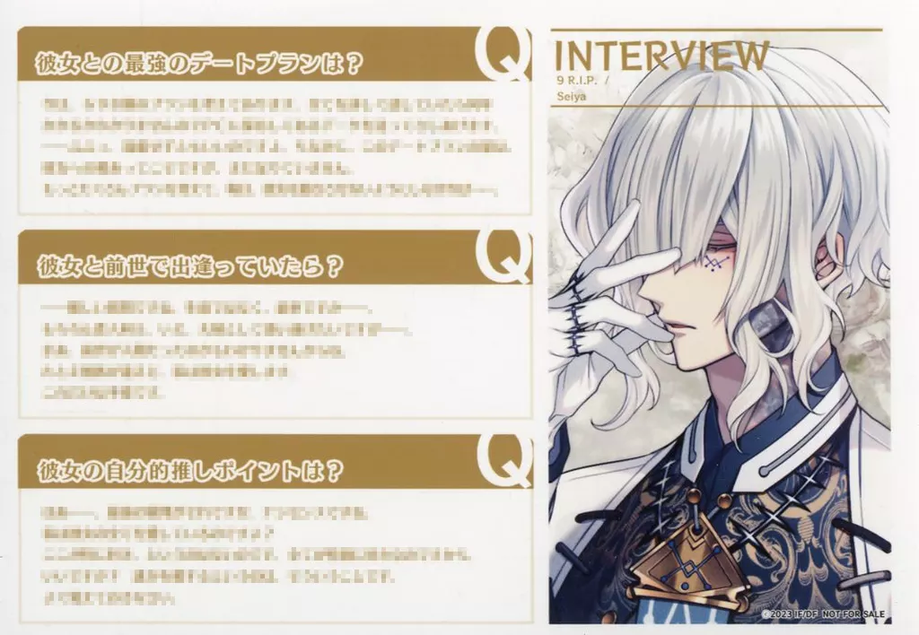 Japanese title: キャラカード 聖ヤ(9 R.I.P.) インタビューカード(L判サイズブロマイド) 「アリスNET×オトメイト SUMMER FAIR 2023」 対象商品購入特典