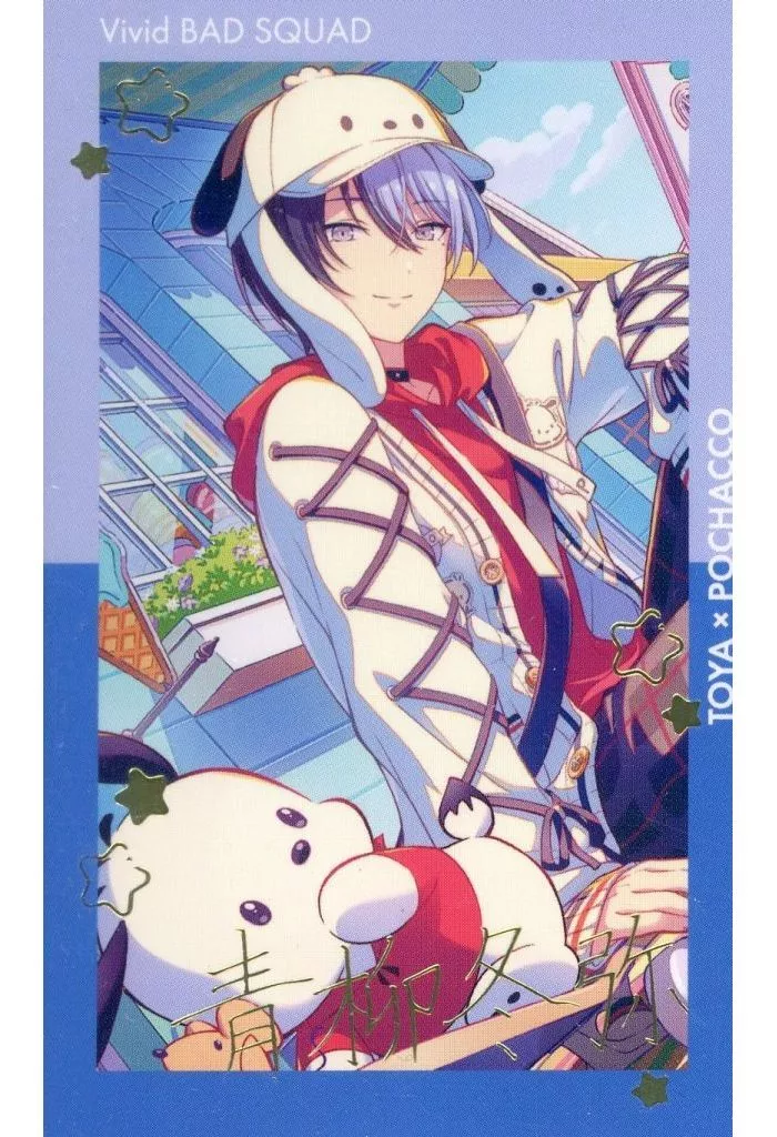 Japanese title: キャラカード 青柳冬弥×ポチャッコ(レア) 「プロジェクトセカイ カラフルステージ! feat. 初音ミク×サンリオキャラクターズ ePick card series」