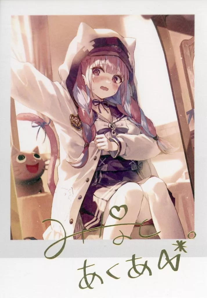 Product explanation ■ "Virtual YouTuber Hololive Minato Aku activity 5th anniversary commemorative activity 5th anniversary commemorative full set" Purchase benefits's "Minato Aku duplicate hot stamping with signature fluffy drawing Cheki style bromide card".