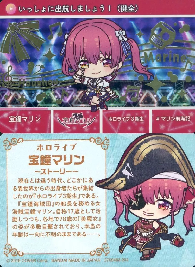 Japanese title: キャラカード 宝鐘マリン(パラレル) 「バーチャルYouTuber ホロライブ カードダス hololive Vol.3」