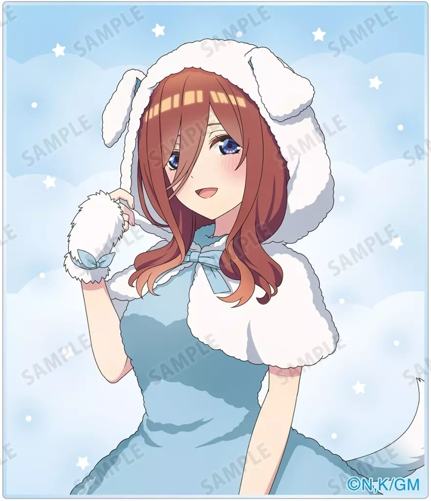 The illustration by Ichihana Nakano, Nino Nakano, Sankyu Nakano, Yotsuba Nakano and Satsuki Nakano is made into an acrylic card.