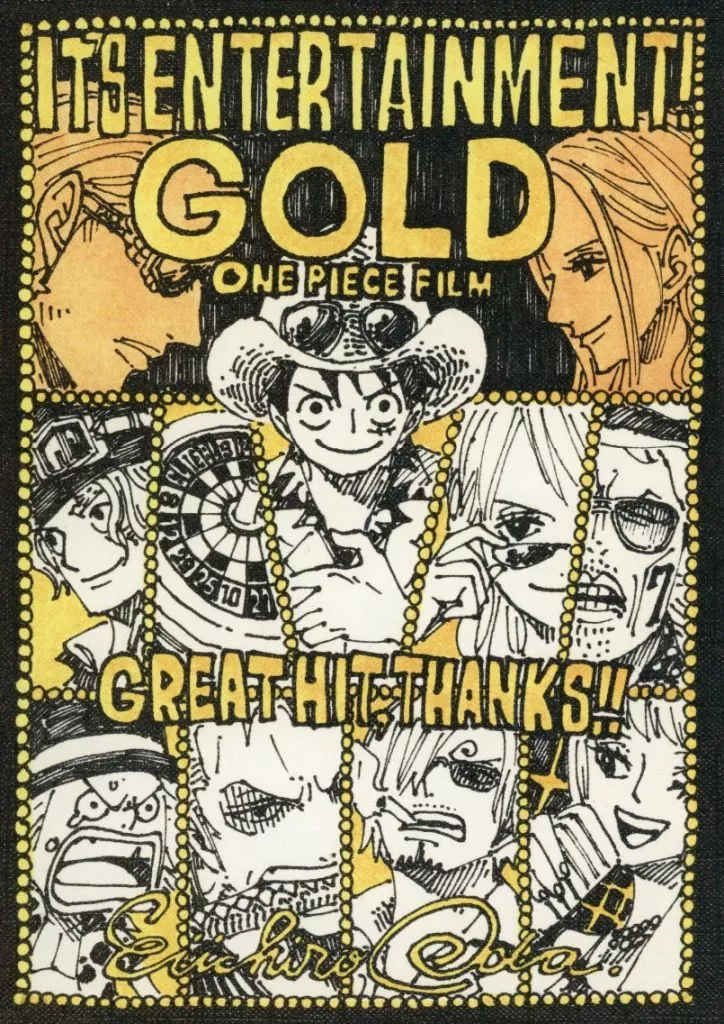 Merchandise Explanation ■ This is "One Piece Film: Gold" Visitor Special 『 Deluxe Cast 15 persons with signature Oda Eiichiro drawing illustration card 』.