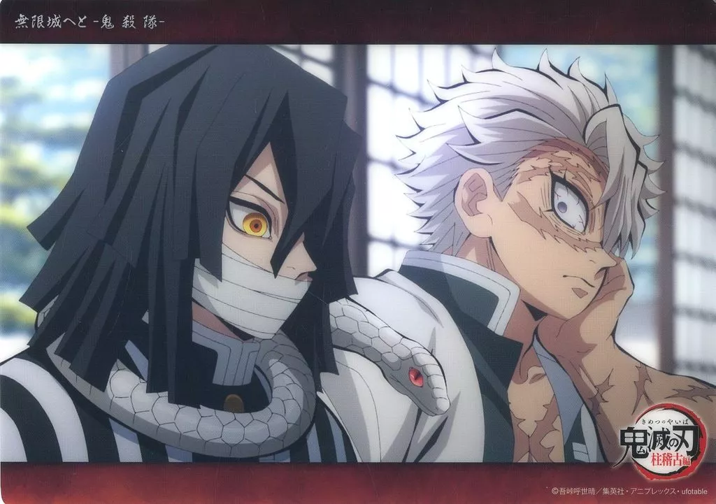 Character card 23. Sanemi Shinazugawa & 伊黒 Small 芭内 (Pillar Training, Final Story c097) "WEBSHOP KUJI Demon Slayer: Kimetsu no Yaiba Mutojo - Oni Satsutai - Collection Big Clear Card"