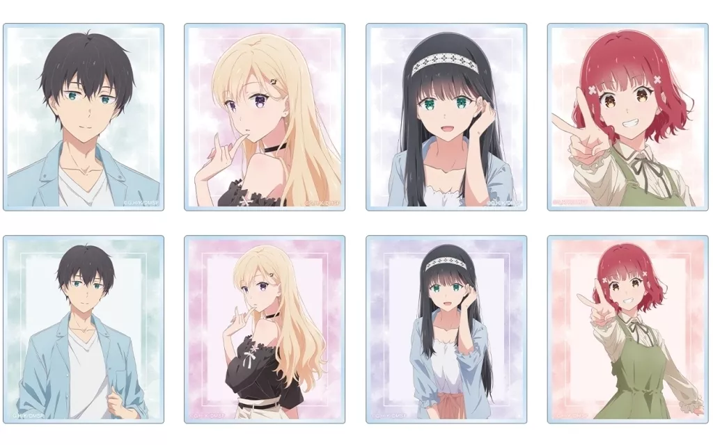 Illustrations of Yuta Asamura, Saki Ayase, Shiori Yomiuri, and 真綾 Narazaka are made into acrylic cards.