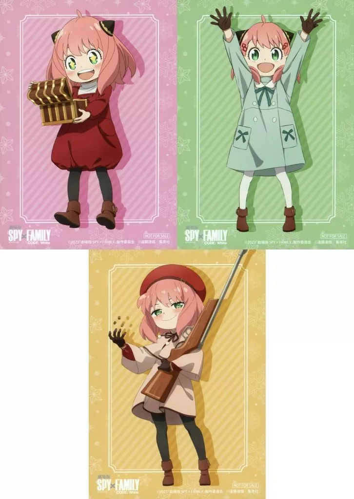 Product Explanation ■ Blu-ray/DVD "Movie version SPY×FAMILY CODE : White deluxe edition" A set of 3 sheet of paper measuring 89 × 127mm Bromides depicting 『 of Animate Purchase benefits. It is a 』 single item.