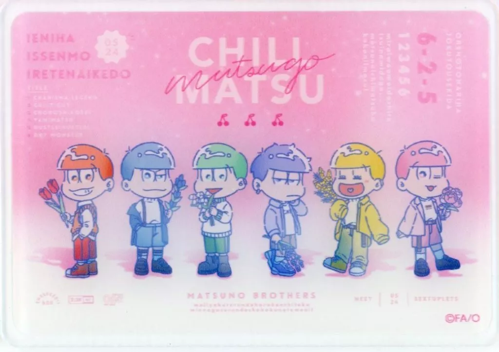 Japanese title: キャラカード 6つ子(背景ピンク) 「おそ松さん CHILL MATU トレーディングアクリルカード」