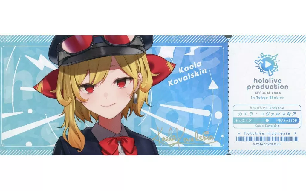 Japanese title: キャラカード カエラ・コヴァルスキア 「バーチャルYoutuber ホロライブ hololive production official shop in Tokyo Station ランダムカード 記念硬券風 ver. Vol1」