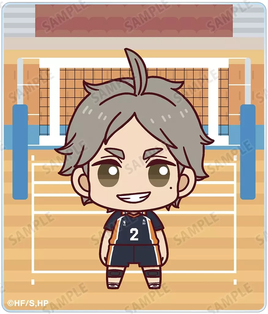 HINATA SHOYO, Kageyama Tobio, Hotaru Tsukishima, Tadashi Yamaguchi, Yu Nishiya, Ryunosuke Tanaka, Daichi Sawamura, Takashi SUGAWARA, and Asahi Toho created a new picture of Chibi Character standing in a small way and finished it into an acrylic card.