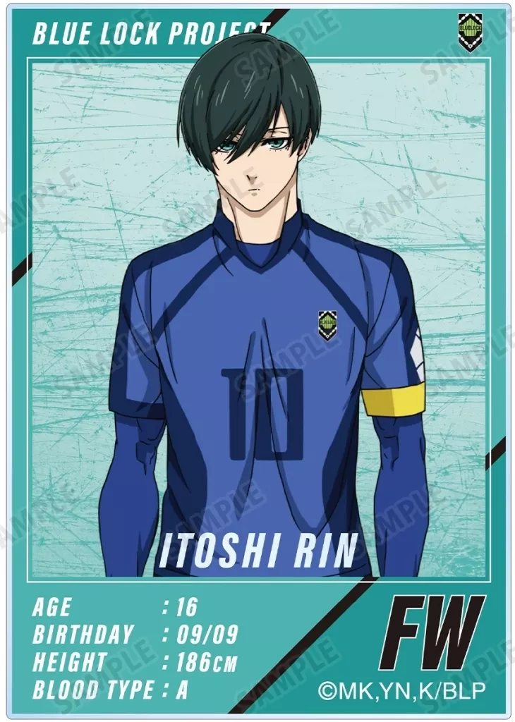 Seiichi Kiyoshi, Hachirakumawashi, Sengiri Hyoma, Seishiro calm sea, Reo Mikage, Rin Itoshi, Ryusei Shido, Utsushi, Kageta 乙夜, ta, Kenyu Yukimiya, 氷織 Lamb, Kojiro Nanaboshi, Sae Itoshi, Oliva Aizora illustration and Character Director information are made into acrylic card.