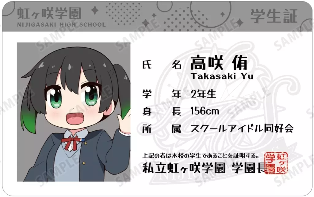 Japanese title: キャラカード 高咲侑 プラスチック学生証風カード 「にじよん あにめーしょん2」