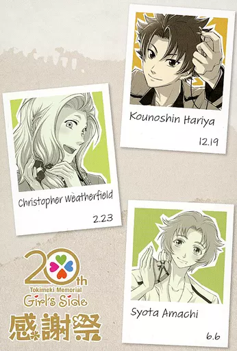 Japanese title: ポストカード 針谷幸之進&クリストファー・ウェザーフィールド&天地翔太 メモリアルポストカード 「ときめきメモリアル Girl’s Side 20周年記念フェア」 対象商品購入特典