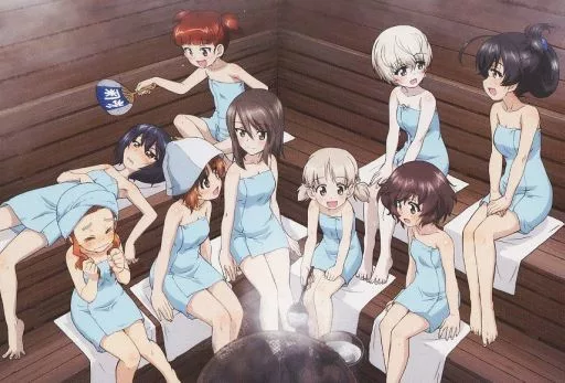 Japanese title: ポストカード 集合(サウナ) キャラクターデザイン・総作画監督:杉本功描き下ろしポストカード 「ガールズ&パンツァー 最終章 第4話」 第2週目来場者特典