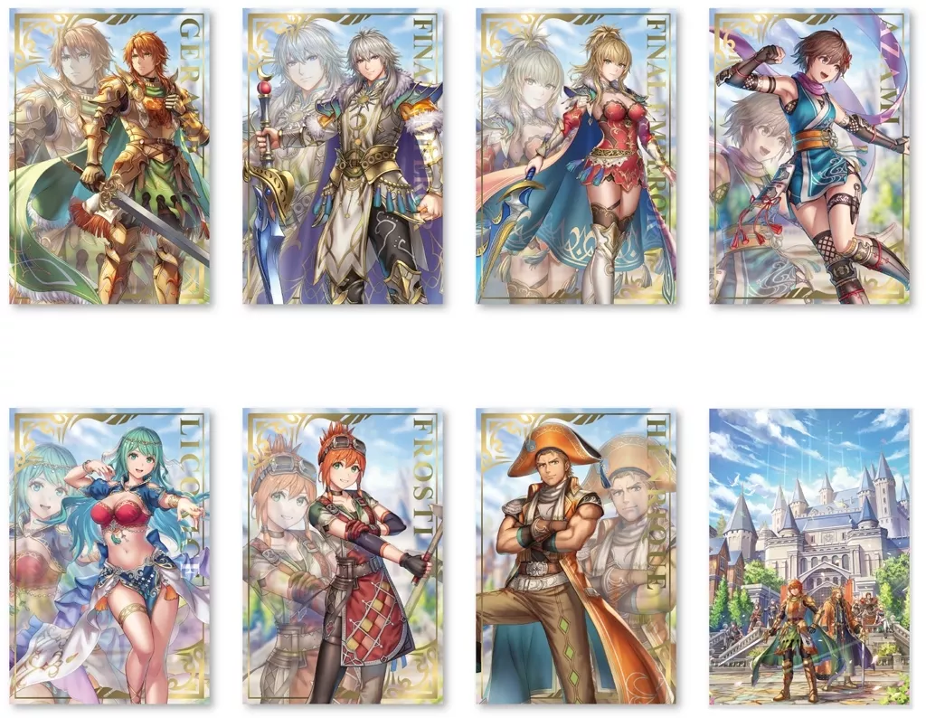 Product Explanation ■ 『 Romancing Sa・Ga 2 : Revenge of the Seven 』 Key Visual and Character Keta Illustration are designed in this set of 8 matte style postcards.