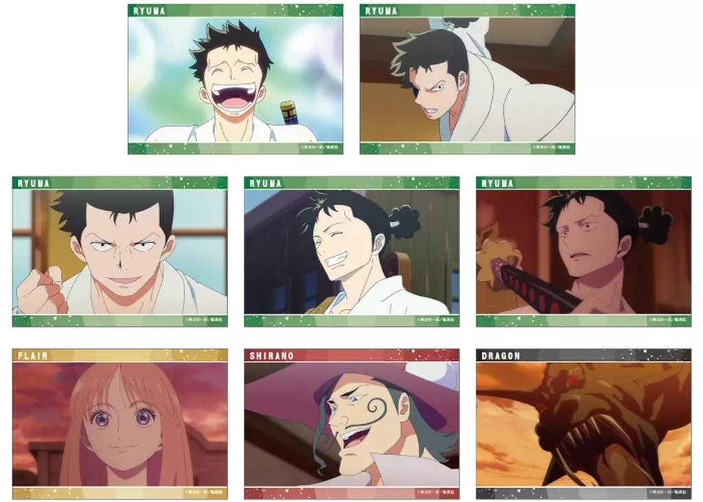Impressive scenes of リューマ, flare, Shirano, and dragon are made into a bromide.