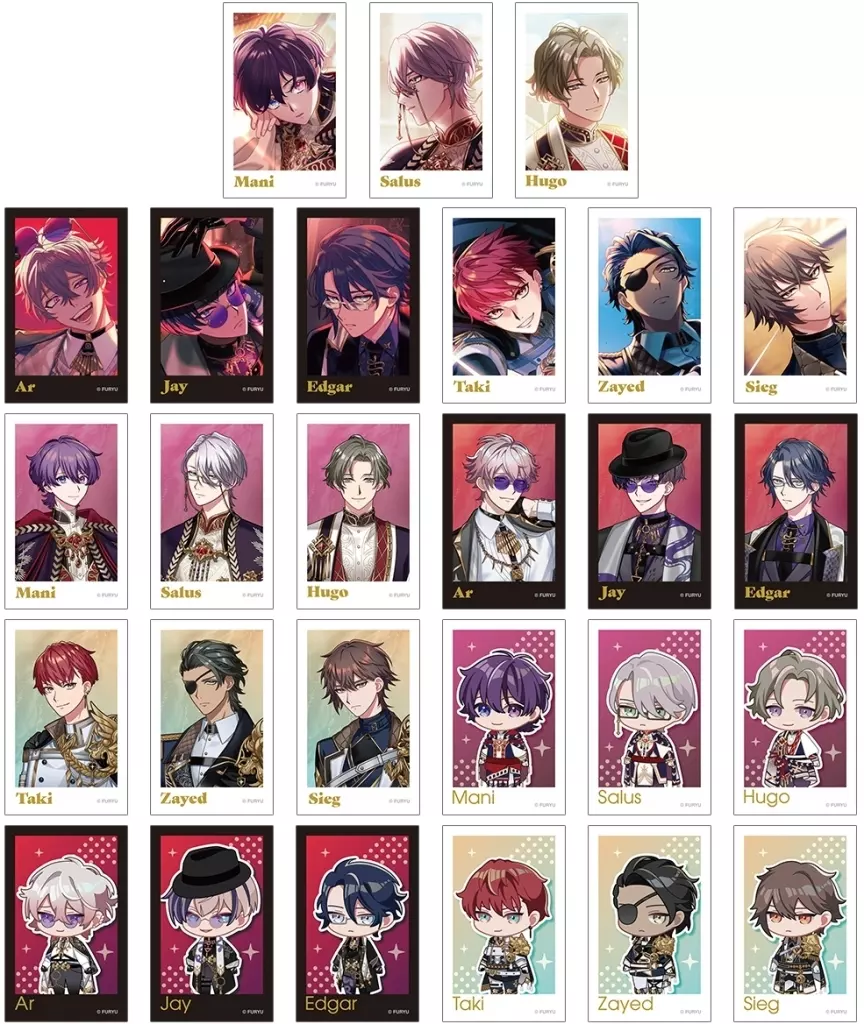 Now available is a instant camera style illustration card with illustrations of Mani, Salos, Hugo, Al, Jay, Edgar, Taki, Zaide, and Zeke.
