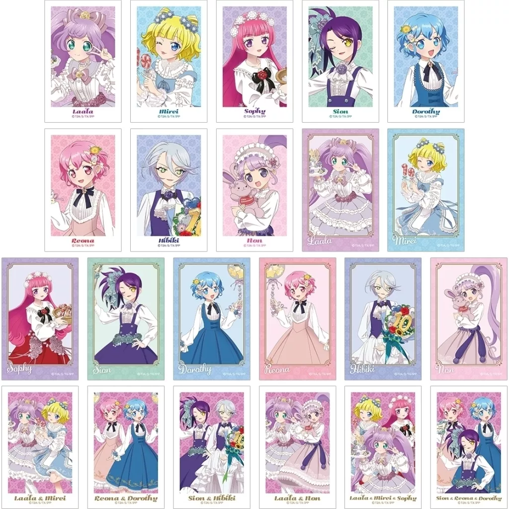 The illustration card is made with illustrations drawn by Laala Manaka, Mirei Minami, Sophie Hojo, Shion Todo, Dorothy West, Leona West, Hikoin Murasaki, and Non Manaka.