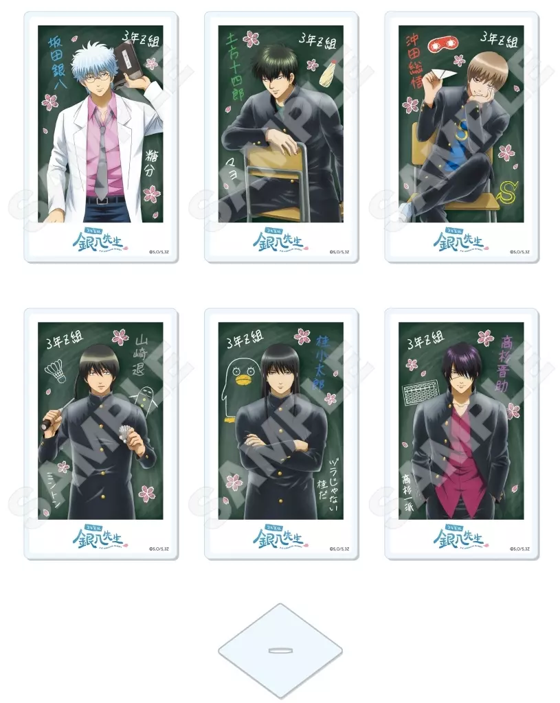 商品解説■「3年Z組銀八先生」より、『アクリルカード』の登場です。【商品詳細】全6種類サイズ:約90×55mm素材:アクリル仕様:台座付属<ラインナップ>坂田銀八土方十四郎沖田総悟山崎退桂小太郎高杉晋助