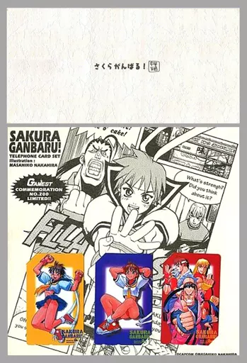 雑誌「GAMEST200号記念」にマルゲ屋から販売された3枚組みテレカになります。Illustration:MASAHIKO NAKAHIRA(C)CAPCOM (C)ASAHIKO NAKAHIRA