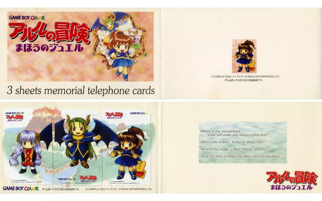 Japanese title: ゲーム・PC系テレホンカード (※台紙汚れ有り)(3枚組) セプテム/サタン/アルル「アルルの冒険 まほうのジュエル [台紙付き]」