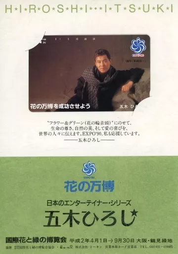 Japanese title: 男性アイドル・俳優系テレホンカード 五木ひろし「EXPO’90 花の万博を成功させよう [台紙付き]」
