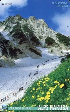 Japanese title: 風景、建造物テレホンカード 「涼風渡る白馬大雪渓 ALPS HAKUBA」