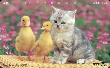 Japanese title: 動物テレホンカード 猫/アヒル「友達といっしょ 105度数」