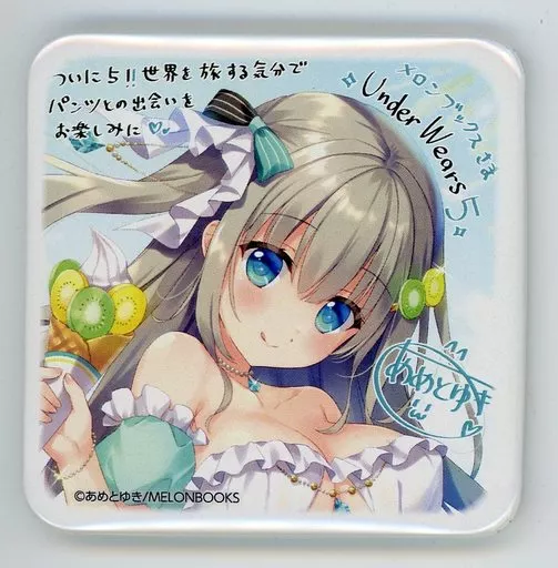 This is "Square metal badge" distributed by "Uribo Zakka Store" which is a brand store of Melon Books in "Under wears5 great appreciation campaign".