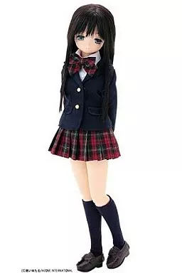 Doll body, jacket (navy blue), ribbon tie (red), blouse (white), skirt (red check), shorts (pink), high socks (navy blue), shoes (dark brown), check ribbon tie (red), instructions