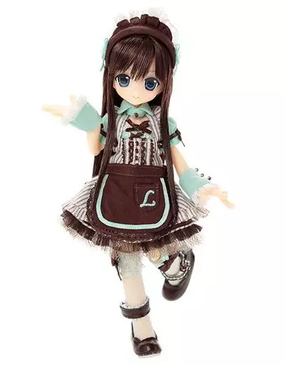 Doll body, band for hair (brown x white), collar (mint green), ONE PIECE (mint green x brown x brown x white)