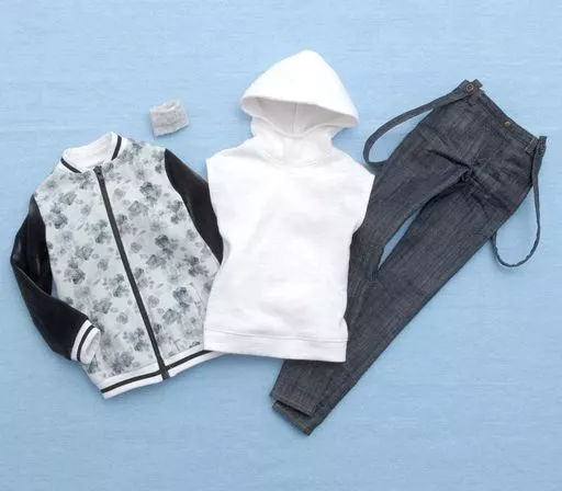 Blouson, French sleeve hoodie, pants with suspenders, wristband