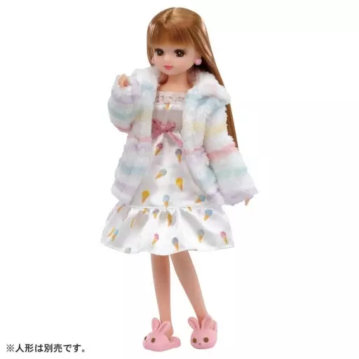 Product description ■ This is a room wear set of a fluffy striped parka and a camisole one piece dress with an ice-cream pattern. It comes with rabbit slippers.