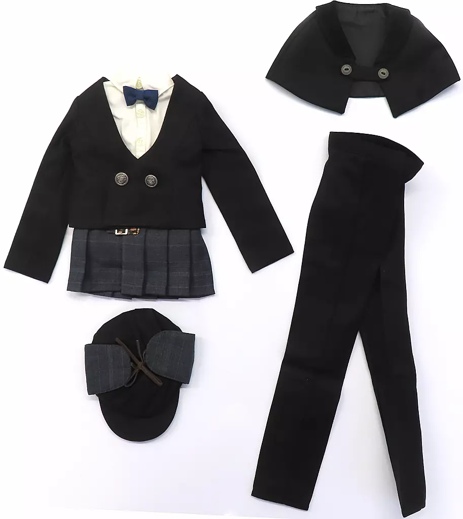 Hats, capes, jackets, shirts, ribbon ties, rolled skirts, pants