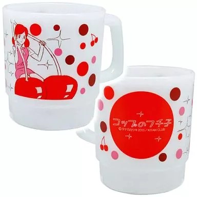 This is a stacking mug by the angel Fuchiko who has danced down on the rim of the cup.