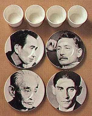 It is a 4-customer set with 1 cup and saucer of Soseki Natsume, Osamu Dazai, Kawabata Yasunari and Kafuka.