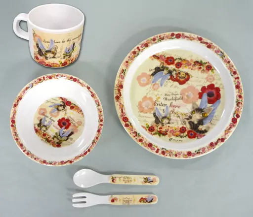 It is a 5-piece set made of melamine resin.