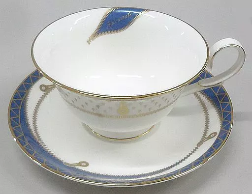 The tea cup and saucer have a thick color with blue and Noritake with the image of Sticky Fingers which is a stand of Bucharati on the bone china.