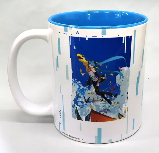 This is a "mug cup" from "Hatsune Miku x DIGIMON ADVENTURE Premium Shop".