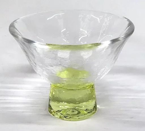 This is 『 Minami Tada Design Glass Ochoko (yellow) 』 which is a Japanese Red Cross blood donation souvenir.