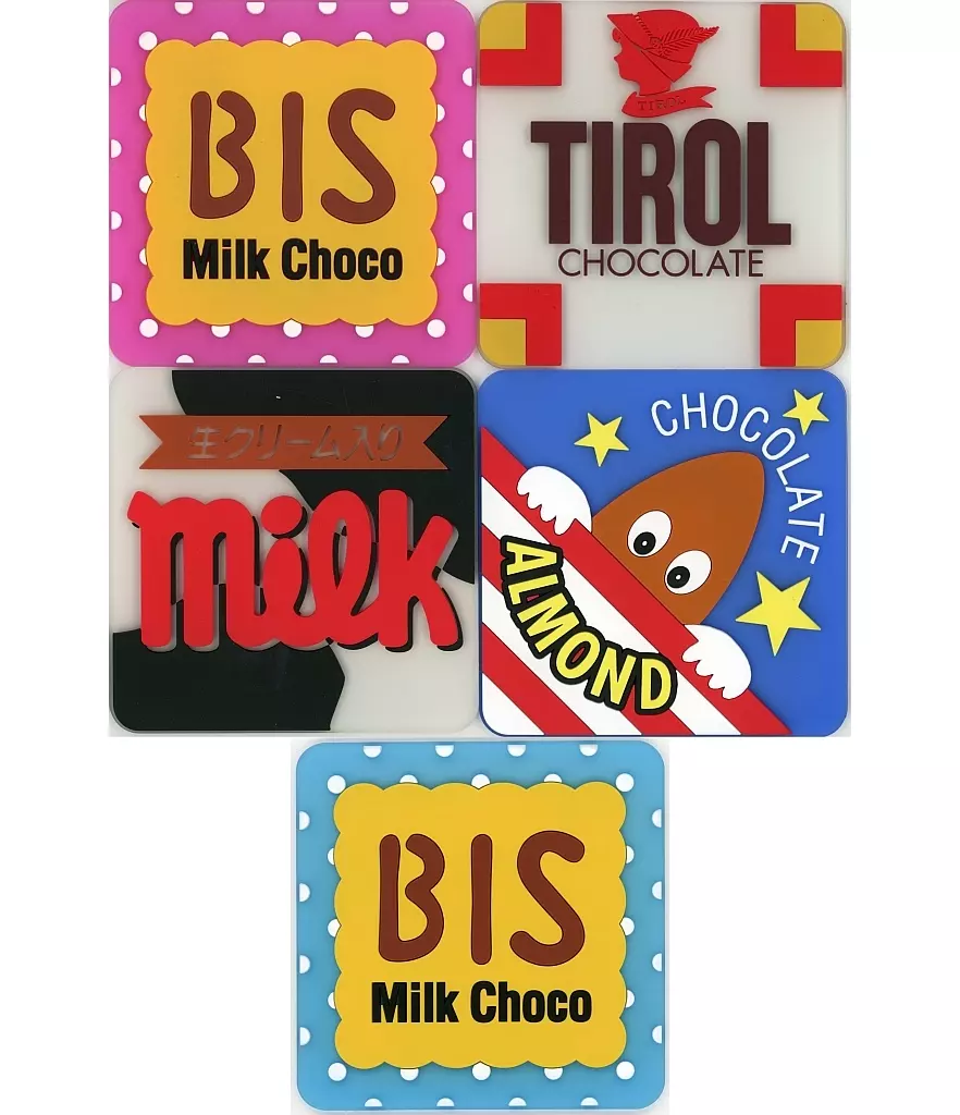 Product Description ■ "Flat Gashapon tirol Chocolate Clear Rubber Coaster" 5 types set.