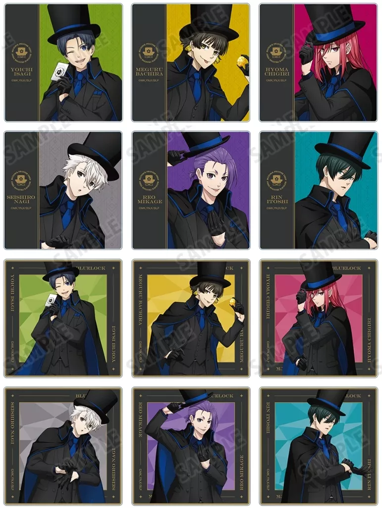 The illustrations by Seiichi Kiyoshi, Hachiraku Mawashi, Sengiri Hyoma, Seishiro calm sea, Reo Mikage, and Rin Itoshi are made into an acrylic coaster.